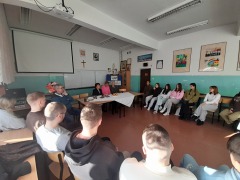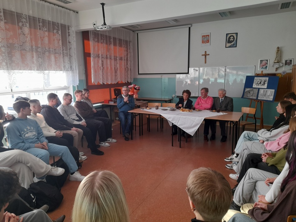 27 listopada 2025 r. odbyło się niezwykłe spotkanie pokoleń. Uczniowie klasy IV B gościli na lekcji wychowawczej Sybiraków, którzy zechcieli podzielić się swoimi wspomnieniami i przeżyciami związanymi z deportacją i pobytem na Syberii. Młodzież z zainteresowaniem słuchała relacji pani Danuty Kołodziejskiej, pana Stanisława Dubiela i pana Edmunda Zaleskiego dotyczących codziennego życia w warunkach zesłania oraz zapamiętanych zdarzeń, epizodów, przeżyć i uczuć, które im wtedy towarzyszyły. Wypowiedzi gości były uzupełniane ciekawymi dygresjami i refleksjami prezesa Związku Sybiraków Oddział w Toruniu pana Jana Myrchy. który również przyjął nasze zaproszenie.