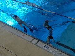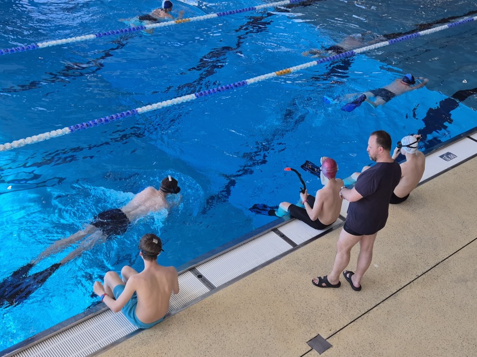 3.         Ćwiczenie umiejętności pływania w sprzęcie ABC – maska, fajka, płetwy - rozgrzewka.