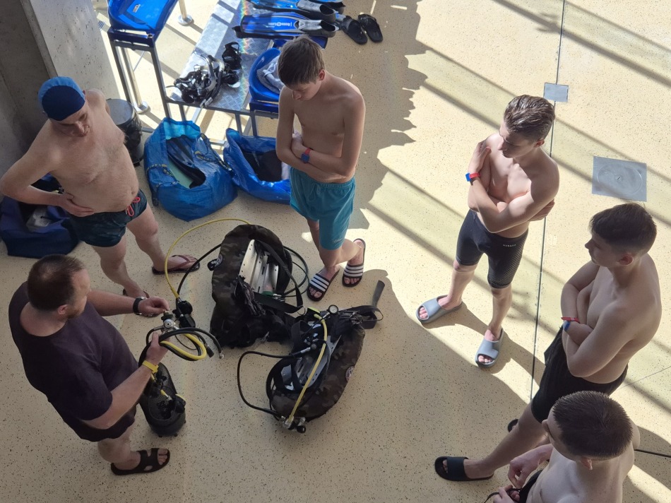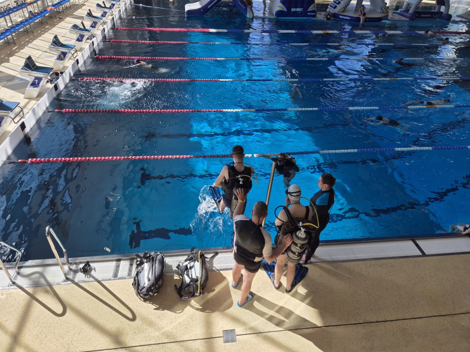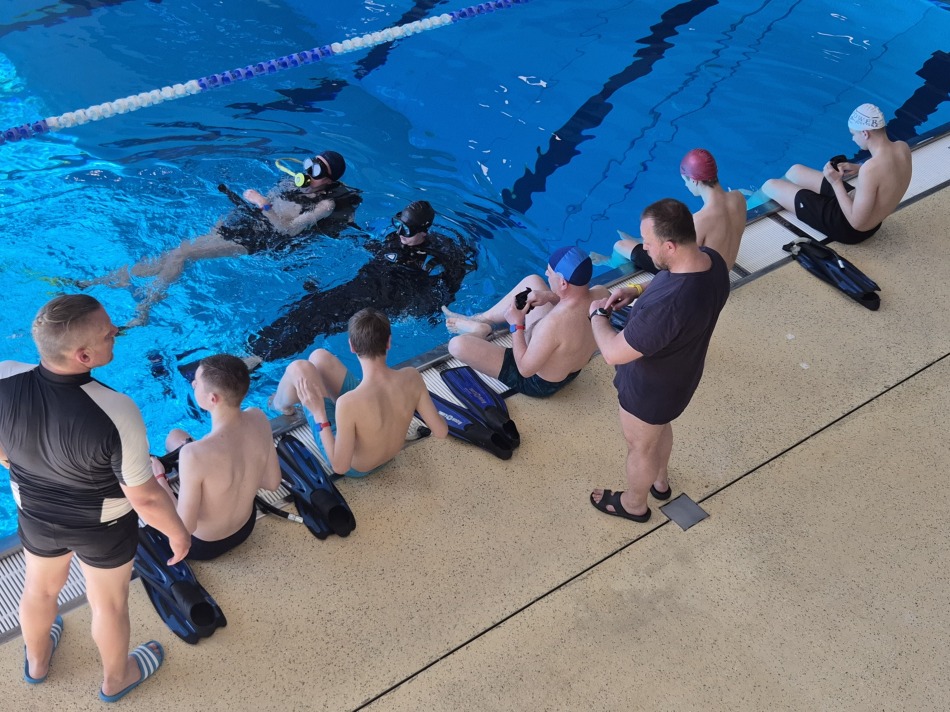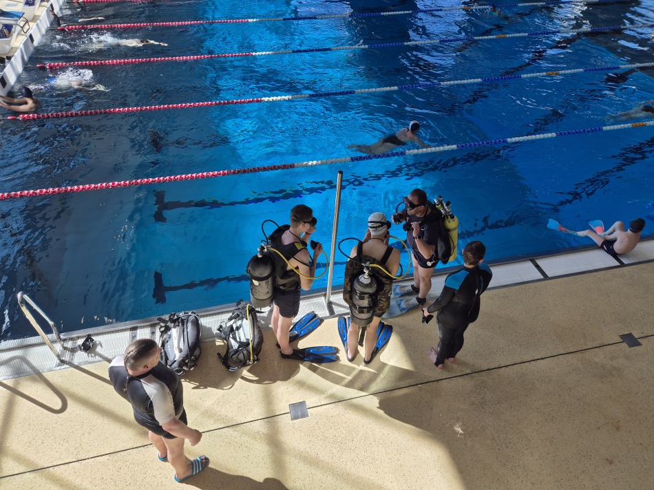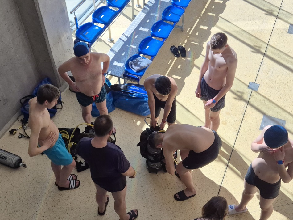 W dniu 26.04.2026 roku grupa uczniów klasy 1 OPW VI Liceum Ogólnokształcącego im. Zesłańców Sybiru kontynuowała szkolenie praktyczne na kursie płetwonurkowym P1 organizowanym przez Komisję Działalności Podwodnej ZG PTTK oraz Harcerską Sekcję Płetwonurków z Chorągwi Kujawsko-Pomorskiej ZHP.  Szkolenie praktyczne tym razem odbyło się na pływalni ASTORIA w Bydgoszczy w godzinach 15.00 - 18.30 i obejmowało: